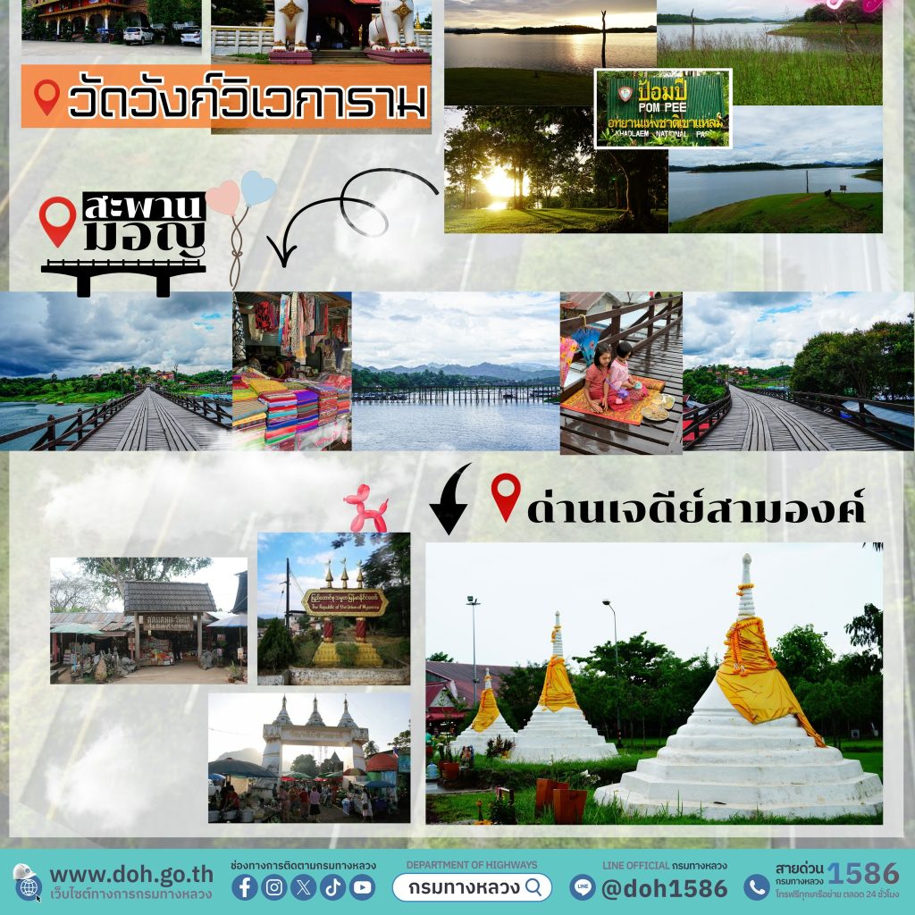 กรมทางหลวง (ทล.) พาเที่ยววิถีชุมชน อ.สังขละบุรี จ.กาญจนบุรี อีกหนึ่งในปลายทางท่องเที่ยวที่มีเอกลักษณ์ โดดเด่นและเปี่ยมด้วยเสน่ห์เฉพาะตัว ทั้งด้านธรรมชาติ ประวัติศาสตร์ และวิถีชีวิตของผู้คนหลากหลายวัฒนธรรมท่ามกลางภูเขา ป่าไม้ และสายน้ำอันเงียบสงบ เหมาะสำหรับนักท่องเที่ยวที่ต้องการพักผ่อน เรียนรู้ และสัมผัสบรรยากาศเรียบง่ายแต่ทรงคุณค่า