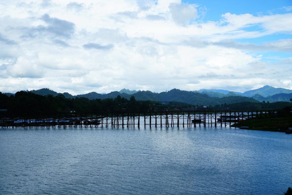 สะพานมอญ สะพานไม้ที่ยาวที่สุดในประเทศไทย และเป็นสัญลักษณ์สำคัญของสังขละบุรี เชื่อมโยงวิถีชีวิตของชุมชนไทย – มอญ