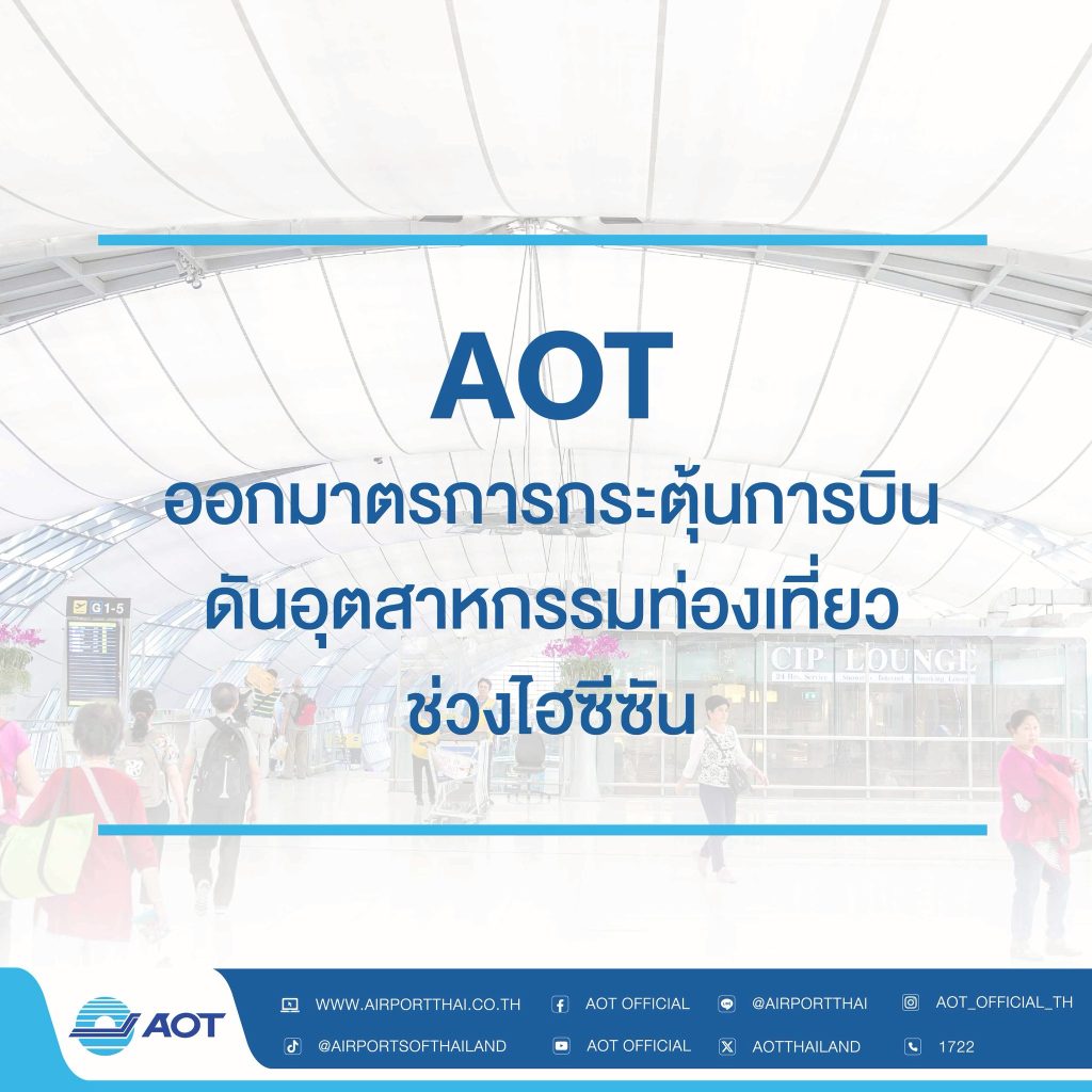 AOT จึงได้จัดทำมาตรการส่งเสริมตลาดด้านการบิน ณ ท่าอากาศยานทั้ง 6 แห่ง โดยให้ส่วนลดค่าบริการด้านการบินและสนับสนุนสิทธิประโยชน์ (Incentive) แก่สายการบินที่ทำการบินทดแทนเที่ยวบินที่คืนตารางการบิน (Slot) โดยคณะกรรมการ AOT ได้อนุมัติมาตรการดังกล่าวในการประชุมครั้งที่ 19/2568 เมื่อวันที่ 24 ธันวาคม 2568 ซึ่งมาตรการดังกล่าวจะเริ่มตั้งแต่วันที่ 1 มกราคม ถึงวันที่ 28 มีนาคม 2569 ซึ่งจะเป็นการกระตุ้นให้สายการบินตัดสินใจทำการบินมายังประเทศไทยได้เร็วยิ่งขึ้น ลดการสูญเสียรายได้จากการยกเลิก Slot ของสายการบิน และเพิ่มส่วนแบ่งทางการตลาดด้านการบินของ AOT