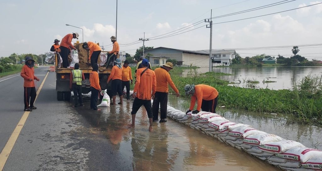 นอกจากนี้ แขวงทางหลวงชนบทพระนครศรีอยุธยา และหมวดบำรุงทางหลวงชนบทในสังกัด ได้ระดมกำลังเจ้าหน้าที่บรรจุถุงทราย เพื่อนำกระสอบทรายไปวางกั้นน้ำสองข้างทาง ไม่ให้มวลน้ำไหลเข้าท่วมถนนทางหลวงชนบทสาย อย.4044 แยก ทล.3454 (กม.ที่ 7+500) – บ้านเจ้าเจ็ด อำเภอเสนา และถนนทางหลวงชนบทสาย อย.4031 แยก ทล.3412 – บ้านแค อำเภอบางบาล, เสนา, ผักไห่ จังหวัดพระนครศรีอยุธยา รวมไปถึง แขวงทางหลวงชนบทสุโขทัย ซึ่งยังคงบูรณาการร่วมกับจังหวัดสุโขทัยในการสนับสนุนรถบรรทุก รับ-ส่ง ประชาชน ผู้ป่วย และบุคลากรทางการแพทย์ของโรงพยาบาลสุโขทัยอย่างต่อเนื่องจนกว่าสถานการณ์จะคลี่คลาย