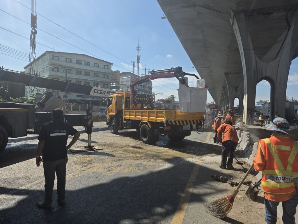 ขณะเดียวกัน ได้มอบหมายให้วิศวกรผู้เชี่ยวชาญด้านโครงสร้างจากสำนักสำรวจและออกแบบ เข้าตรวจสอบความมั่นคงแข็งแรงของโครงสร้างสะพานลอยในส่วนที่ไม่ได้รับผลกระทบจากอุบัติเหตุ รวมถึงจัดเตรียมแบบคานและองค์ประกอบโครงสร้างสำหรับการติดตั้งทดแทน โดยการดำเนินการทั้งหมดจะเป็นไปตามมาตรฐานทางวิศวกรรม ควบคู่กับการบริหารจัดการจราจร เพื่อให้สะพานลอยสามารถกลับมาใช้งานได้อย่างเหมาะสม มั่นคง และปลอดภัย