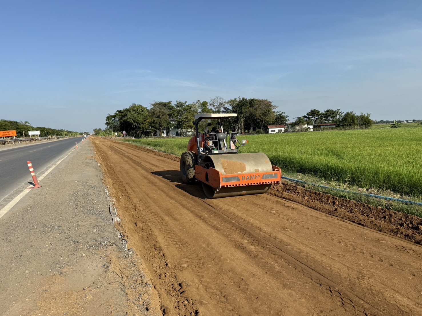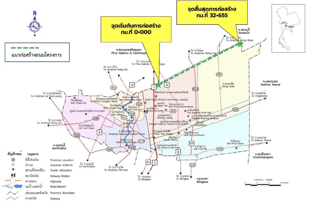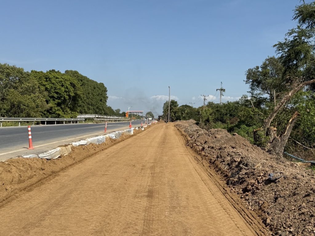 ขณะนี้อยู่ในขั้นตอนการถางป่า งานทรายถมคันทาง งานรองพื้นทาง โดยโครงการก่อสร้างถนนสายนี้คาดว่าแล้วเสร็จสมบูรณ์ในปี 2570 โดยการก่อสร้างมีจุดเริ่มต้นโครงการ กม.ที่ 0+000 (บริเวณสะพานเทพกุญชร 8) และไปสิ้นสุดโครงการ กม.ที่ 32+655 (บริเวณประตูระบายน้ำปากคลองแยก 1 ขวา) มีรายละเอียดการก่อสร้าง ดังนี้