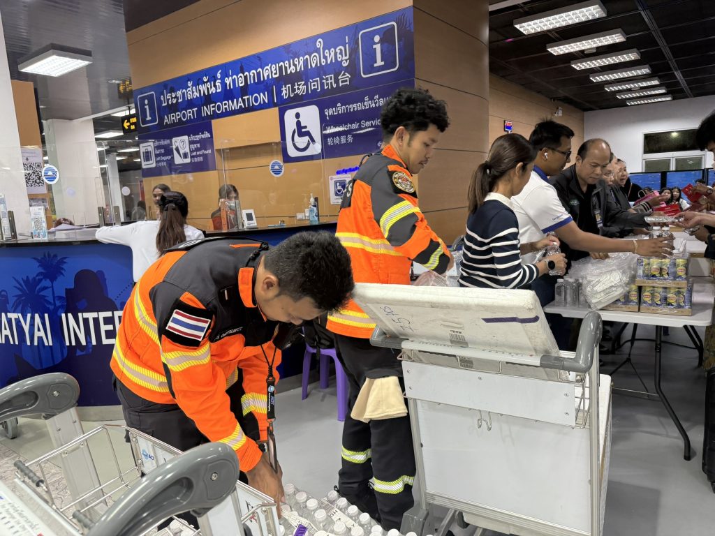 ขณะที่ นายกฤษฎา พุกะทรัพย์ ผู้อำนวยการท่าอากาศยานหาดใหญ่ (ผหญ.) พร้อมด้วยผู้บริหารลงพื้นที่กำกับดูแลการอำนวยความสะดวก พร้อมจัดหาอาหาร และน้ำดื่มไว้คอยบริการผู้โดยสาร ในส่วนของสายการบินที่ให้บริการ ณ ท่าอากาศยานหาดใหญ่ ต่างร่วมดูแลอำนวยความสะดวก และร่วมสนับสนุนอาหาร น้ำดื่ม และสิ่งของจำเป็นไว้คอยบริการผู้โดยสาร อาทิ