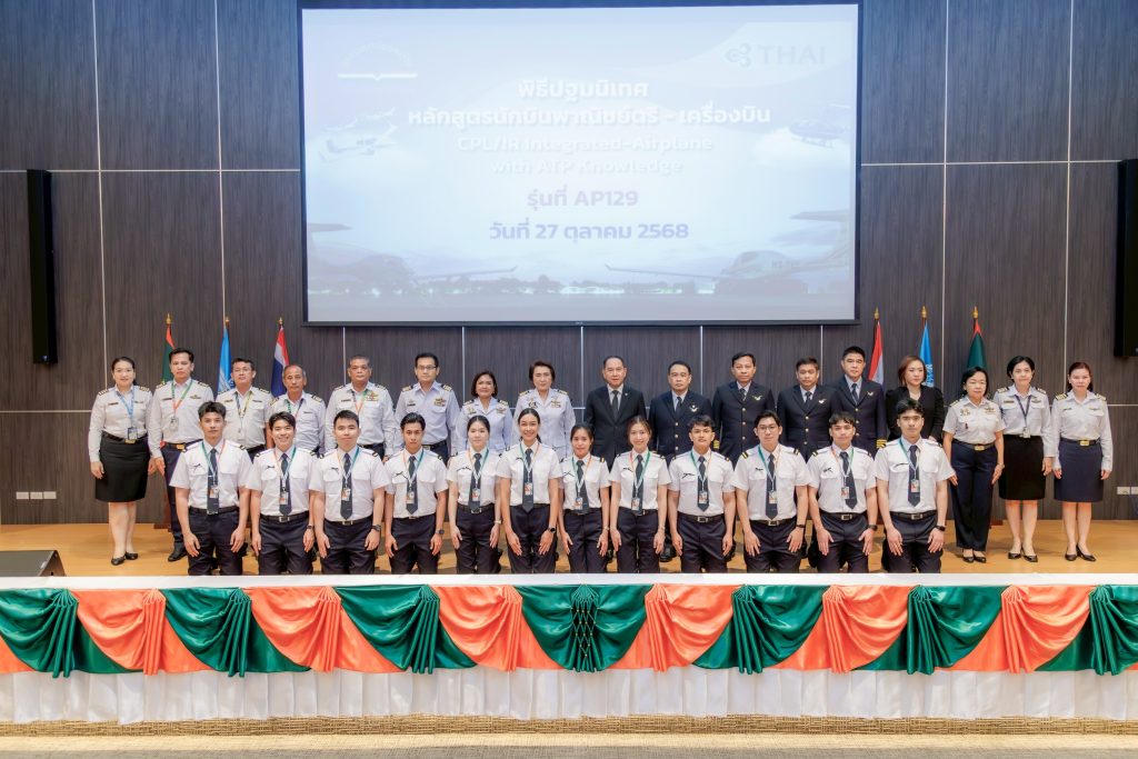 สถาบันการบินพลเรือน (สบพ.) จัดพิธีปฐมนิเทศศิษย์การบิน หลักสูตรนักบินพาณิชย์ตรี–เครื่องบิน รุ่นที่ 129 จำนวน 13 คน ซึ่งผ่านการคัดเลือกเป็นนักบินฝึกหัดของบริษัท การบินไทย จำกัด (มหาชน) โดยมี นางสาวภัคณัฏฐ์ มากช่วย ผู้ว่าการสถาบันการบินพลเรือน เป็นประธาน และได้รับเกียรติจากนายชาย เอี่ยมศิริ ประธานเจ้าหน้าที่บริหาร บริษัท การบินไทย จำกัด (มหาชน) , กัปตันบริสุทธิ์ อยู่ใจเย็น ผู้อำนวยการฝ่ายฝึกอบรมการปฏิบัติการบิน, กัปตันอภินัท สุนทรธัย ฝ่ายบริหารนักบินโบอิ้ง, กัปตัน ศฐา บุญยะวัฒน์ ผู้อำนวยการฝ่ายบริหารนักบิน, กัปตันเจริญ ศิริทับ ฝ่ายฝึกอบรมนักบิน (หัวหน้าครู ฟลีทโบอิ้ง) พร้อมด้วยคณะผู้บริหารจากทั้งสองหน่วยงาน คณาจารย์ และศิษย์การบิน เข้าร่วมในพิธี เมื่อวันที่ 27 ตุลาคม 2568 ณ สถาบันการบินพลเรือน กรุงเทพฯ