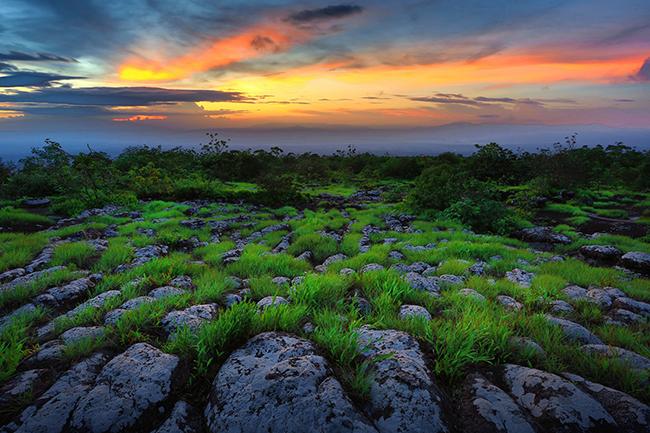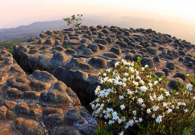 – ลานหินปุ่ม แผ่นหินกว้าที่เต็มไปด้วยหินปุ่มกลมรีเรียงรายราวมีกับมีการจัดวาง