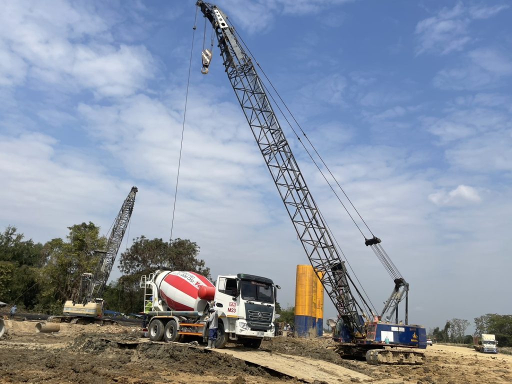 – บริเวณ กม.ที่ 0+676.528 ก่อสร้างสะพานข้ามทางรถไฟ ขนาด 4 ช่องจราจร ความยาวสะพานรวม 580 เมตร