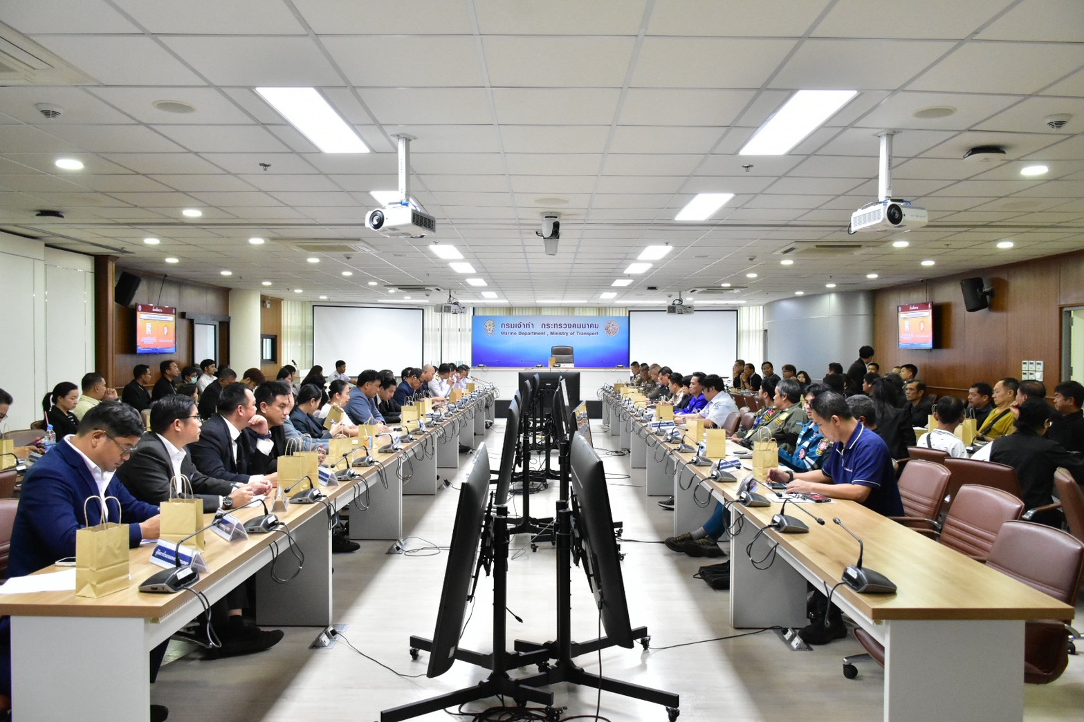 นายกริชเพชร ชัยช่วย อธิบดีกรมเจ้าท่า (จท.) มอบหมายให้ นายพิทักษ์ วัฒนพงศ์พิศาล ผู้อำนวยการสำนักความปลอดภัยและสิ่งแวดล้อมทางน้ำ เป็นประธานฯ ในการประชุมการเตรียมความพร้อมในการปฏิบัติงานในประเพณีลอยกระทง พ.ศ.2568 พร้อมด้วยเจ้าหน้าที่กรมเจ้าท่าที่เกี่ยวข้อง รวมทั้งหน่วยงานภาครัฐ ภาคเอกชน ผู้ประกอบการทางน้ำ ผู้ประกอบการโรงแรมริมแม่น้ำเจ้าพระยาที่เกี่ยวข้อง เข้าร่วมประชุมฯ ณ ห้องประชุมวิสูตรสาครดิษฐ์ ชั้น 4 อาคารวิสูตรสาคร กรมเจ้าท่า