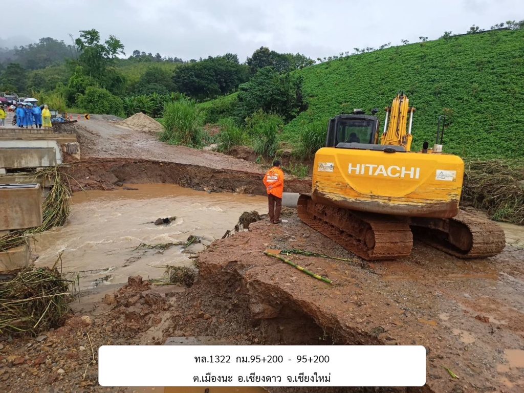 – ทล.1322 แม่จา – รินหลวง ช่วง กม.ที่ 95+200 – 95+200 อ.เชียงดาว ระดับน้ำ 10 ซม. ทางเบี่ยงขาดไม่มีทางเลี่ยง