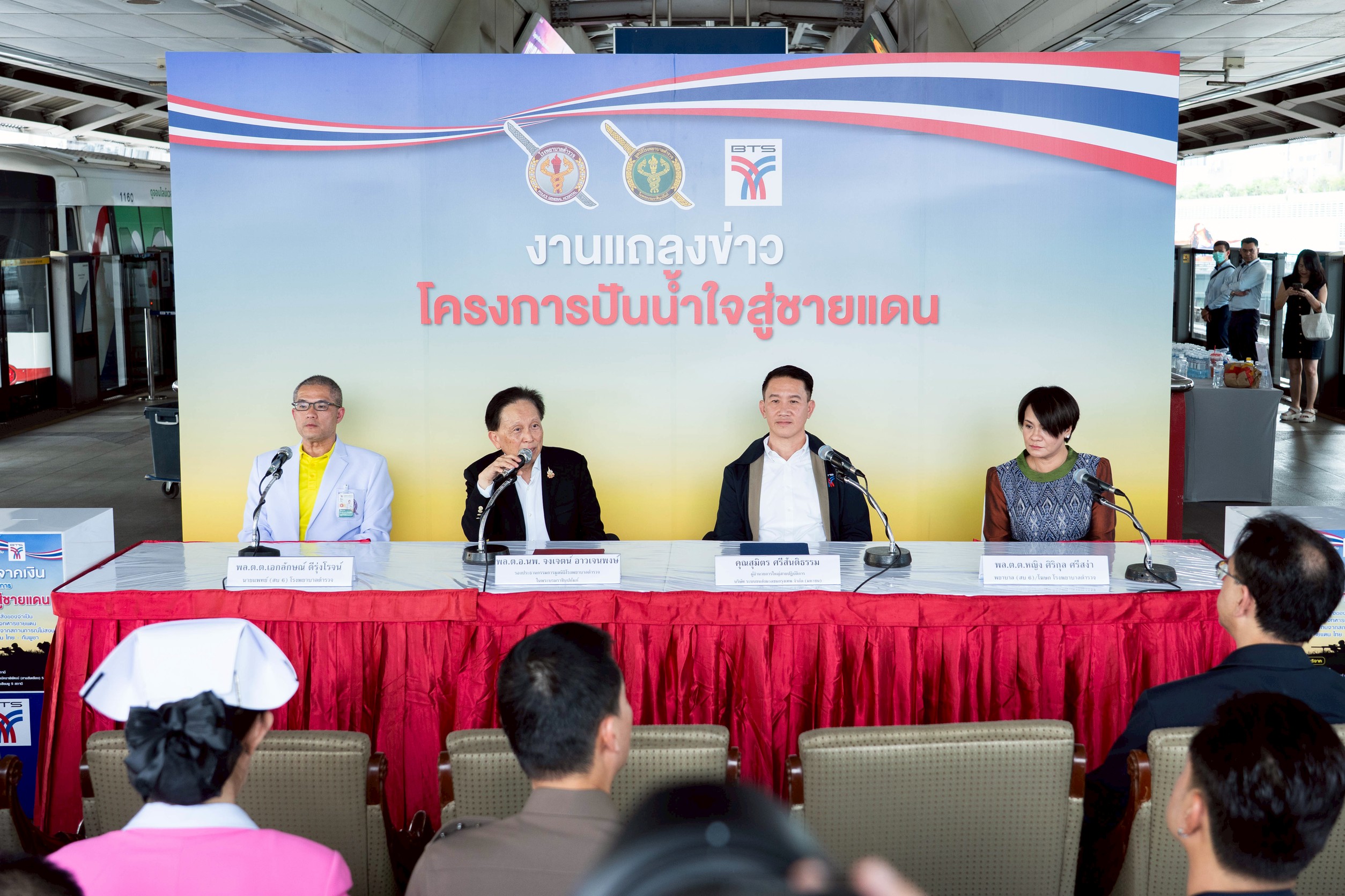 นายสุมิตร ศรีสันติธรรม ผู้อำนวยการใหญ่สายปฏิบัติการ บริษัท ระบบขนส่งมวลชนกรุงเทพ จำกัด (มหาชน) กล่าวว่า วันนี้ถือเป็นความร่วมมือครั้งสำคัญ ของมูลนิธิโรงพยาบาลตำรวจฯ ที่เป็นตัวแทนภาครัฐ และบีทีเอส ที่เป็นตัวแทนภาคเอกชน ในการสร้าง “พื้นที่แห่งการแบ่งปัน” ภายในสถานีรถไฟฟ้าทั้ง 80 แห่ง เพื่อเป็นพลังที่สำคัญในการระดมทุน ส่งต่อกำลังใจ และความช่วยเหลือไปยังกำลังพล และประชาชน ตามแนวชายแดนไทย-กัมพูชา ที่ต้องการความช่วยเหลือ นอกจากนี้ยังเป็นการเปิดโอกาสให้ผู้โดยสารรถไฟฟ้า และประชาชนทั่วไป ได้มีส่วนร่วมในการแบ่งปัน และส่งมอบกำลังใจให้กำลังพล และผู้ประสบภัยจากความไม่สงบตามแนวชายแดนไทย-กัมพูชา ซึ่งแสดงให้เห็นถึงพลังความสามัคคีอันยิ่งใหญ่ของคนไทย ที่จะนำไปสู่การสร้างสรรค์สังคมแห่งการเกื้อกูลอย่างยั่งยืน