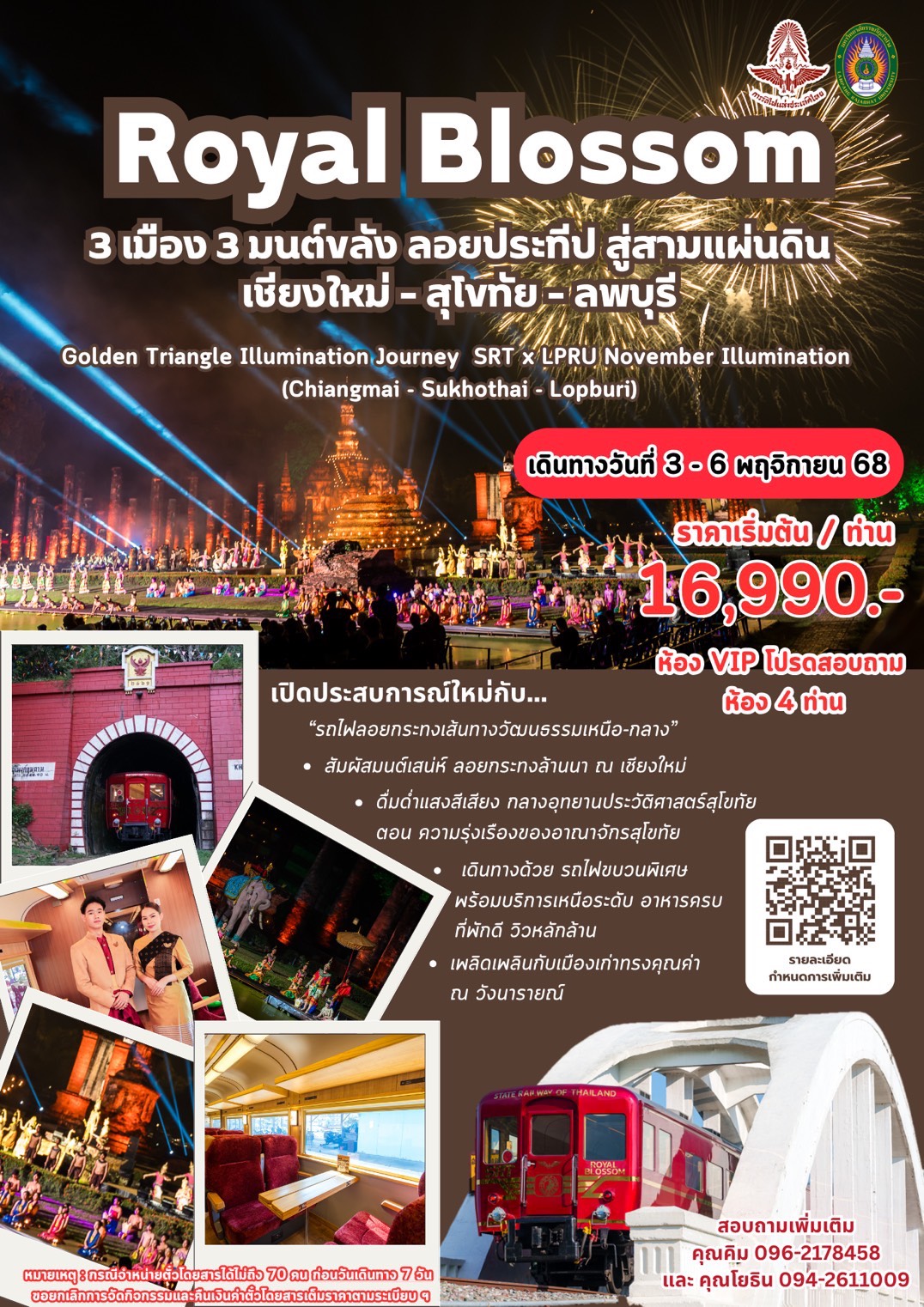 เปิดประสบการณ์สุดพิเศษ ลอยประทีปสู่สามแผ่นดิน ระหว่างวันที่ 3 – 6 พฤศจิกายน 2568 Royal Blossom เที่ยวงานลอยกระทงแบบสุดโรแมนติก 3 เมือง 3 มนต์ขลัง ลอยประทีป สู่สามแผ่นดิน เชียงใหม่ – สุโขทัย – ลพบุรี