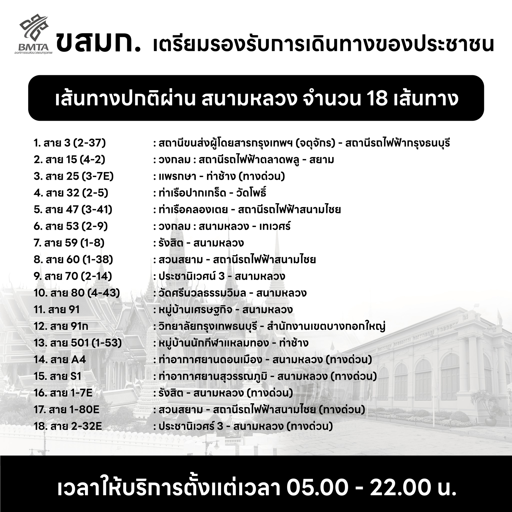 “กระทรวงคมนาคม – ขสมก.” เตรียมความพร้อมอำนวยความสะดวกประชาชนในการเดินทางเข้าร่วมถวายน้ำสรงพระบรมศพ สมเด็จพระพันปีหลวง เบื้องหน้าพระบรมฉายาลักษณ์ วันที่ 26 ต.ค.2568 ณ ศาลาสหทัยสมาคม พระบรมมหาราชวัง