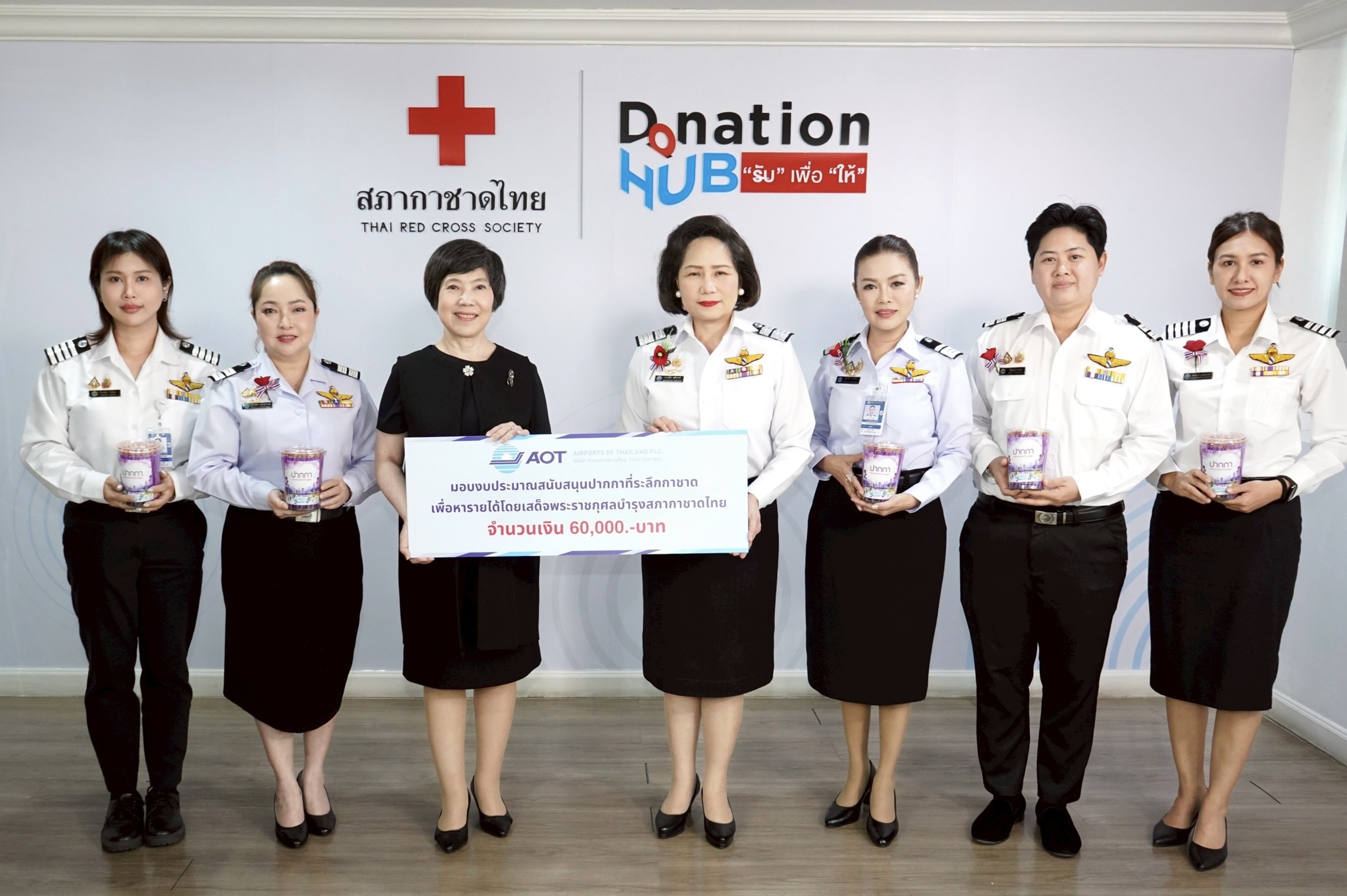 พนักงาน AOT เข้าร่วมมอบงบประมาณสนับสนุนปากกาที่ระลึกกาชาด เพื่อหารายได้โดยเสด็จพระราชกุศลบำรุงสภากาชาดไทย จำนวน 60,000 บาท ให้แก่สภากาชาดไทย โดย นางจันทร์ประภา วิชิตชลชัย